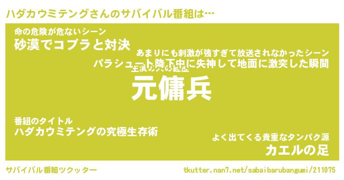 | 伝説のあだ名 | 『封印されし傭兵ハダカウミテング』 |