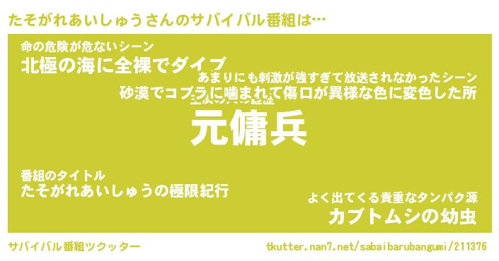 | 伝説のあだ名 | 『封印されしスナイパーたそがれあいしゅう』 |