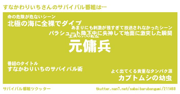 | 胡散臭い通販商品みたいなあだ名 | 『億万長者になれるブレスレット…その名も「すなかわりいち」』 |