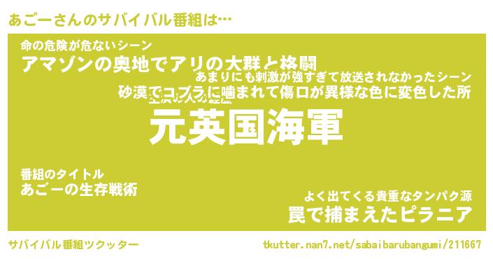 | 伝説のあだ名 | 『伝説の傭兵あごー』 |
