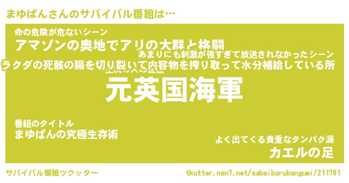 | 伝説のあだ名 | 『伝説のスナイパーまゆぱん』 |