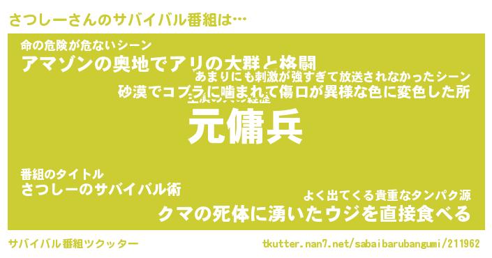 | 伝説のあだ名 | 『封印されし傭兵さつしー』 |