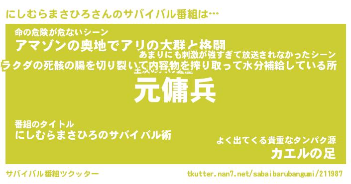 | 胡散臭い通販商品みたいなあだ名 | 『億万長者になれる水晶球…その名も「にしむらまさひろ」』 |