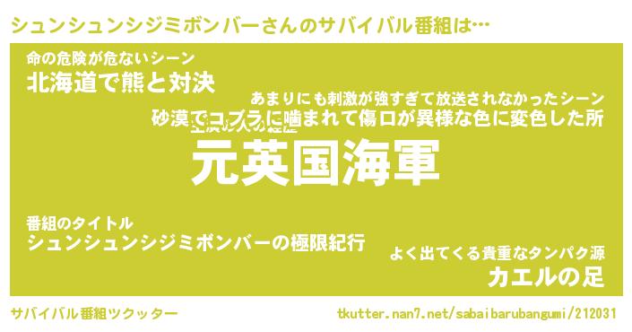 | ヒーロー風カッコイイあだ名 | 『スーパーシュンシュンシジミボンバー』 |