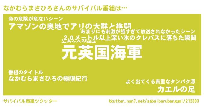 なかむらまさひろさんのサバイバル番組をツクッター!