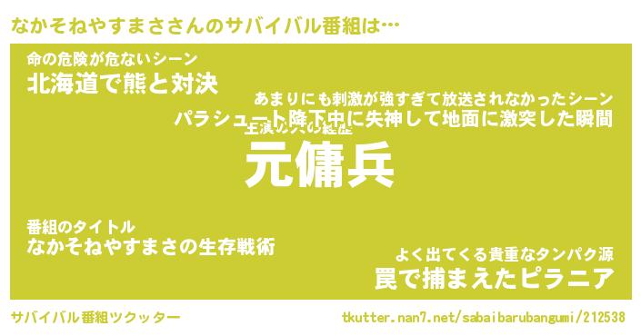 | 胡散臭い通販商品みたいなあだ名 | 『億万長者になれるブレスレット…その名も「なかそねやすまさ」』 |