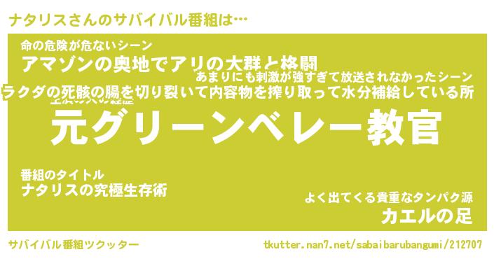 | ヘコむあだ名 | 『ナタにー』『酢こんぶ』『ナタを』 |
