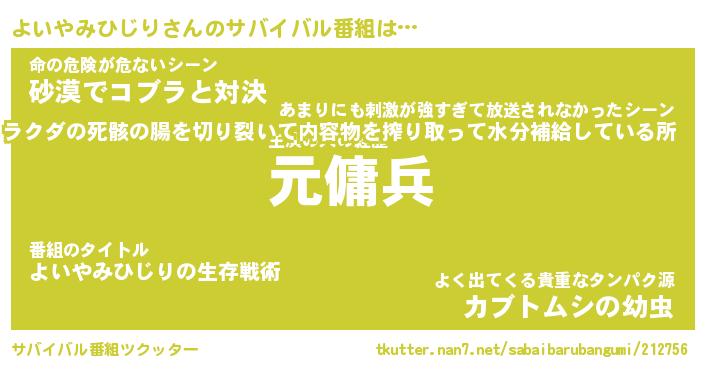 | 胡散臭い通販商品みたいなあだ名 | 『億万長者になれるブレスレット…その名も「よいやみひじり」』 |