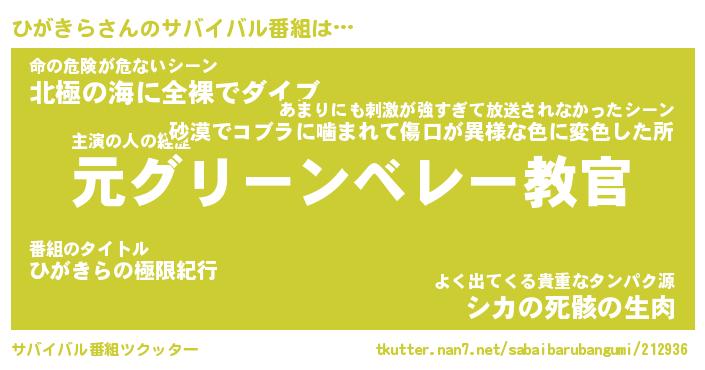 | ヘコむあだ名 | 『ひがにー』『つくし』『ひが太郎』 |
