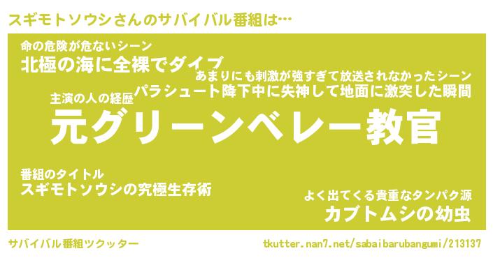 | ヘコむあだ名 | 『スギもー』『なまこ酢』『スギお』 |