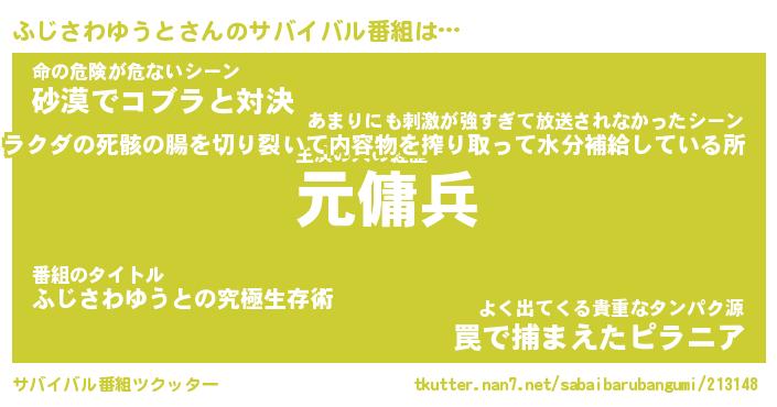 | 胡散臭い通販商品みたいなあだ名 | 『億万長者になれるブレスレット…その名も「ふじさわゆうと」』 |