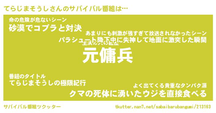 | 伝説のあだ名 | 『封印されし傭兵てらじまそうし』 |