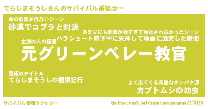 | 伝説のあだ名 | 『不死鳥のスナイパーてらじまそうし』 |