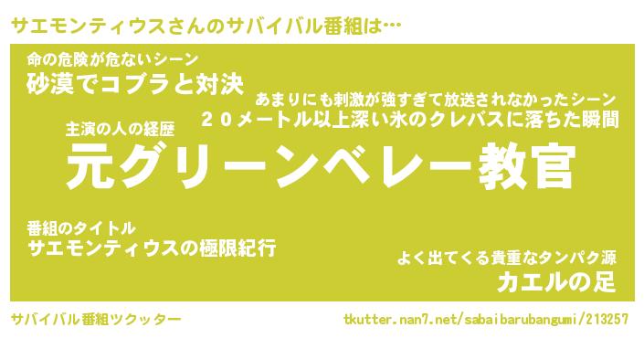 サエモンティウスさんのサバイバル番組をツクッター!
