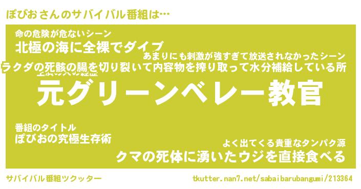 | 伝説のあだ名 | 『伝説のスナイパーぽびお』 |