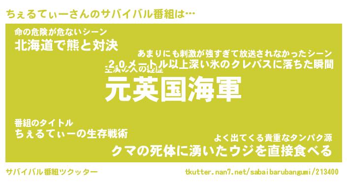| 伝説のあだ名 | 『伝説のスナイパーちぇるてぃー』 |