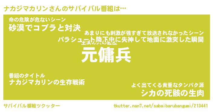 | 伝説のあだ名 | 『封印されしスナイパーナカジマカリン』 |