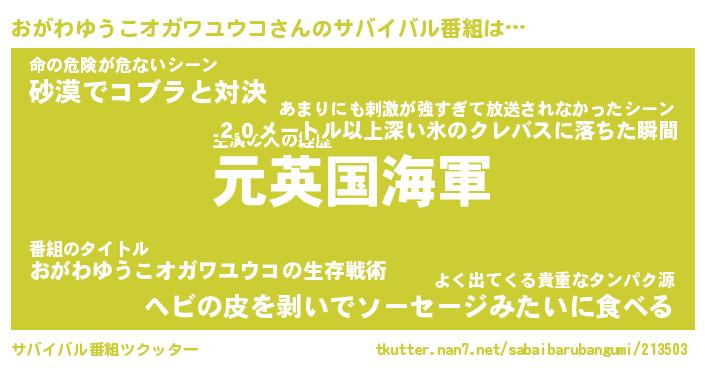 | 伝説のあだ名 | 『伝説のスナイパーおがわゆうこオガワユウコ』 |