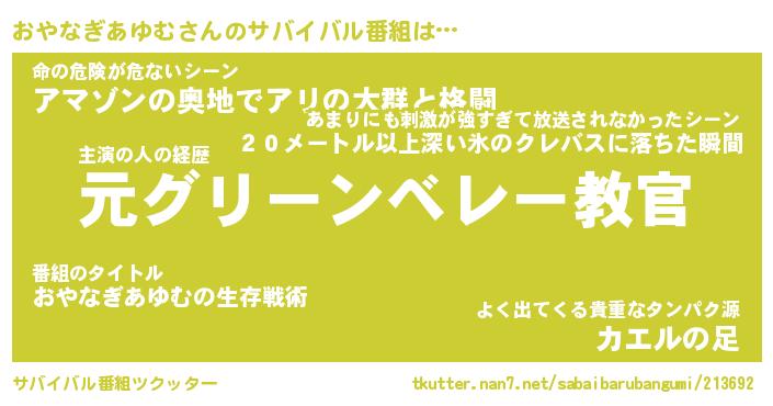 | 伝説のあだ名 | 『不死鳥の傭兵おやなぎあゆむ』 |