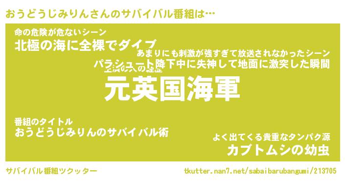 | 伝説のあだ名 | 『伝説のスナイパーおうどうじみりん』 |