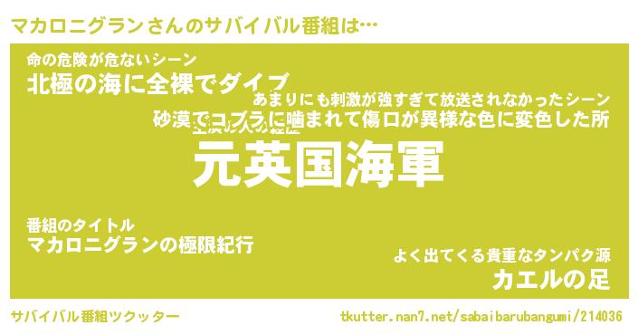 | 欧米人風あだ名 | 『マイケルマカロニグラン』 |