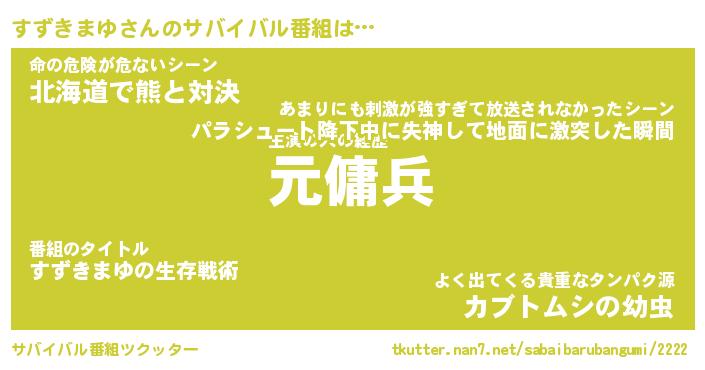 | ヒーロー風カッコイイあだ名 | 『スーパースズキマユ』『黄金騎士スズ』 |