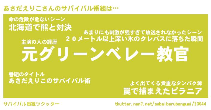 | 伝説のあだ名 | 『不死鳥の傭兵あさだえりこ』 |