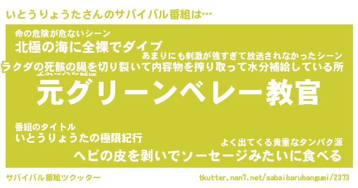 | 胡散臭い通販商品みたいなあだ名 | 『モテモテ間違いなしブレスレット…その名も「いとうりょうた」』 |