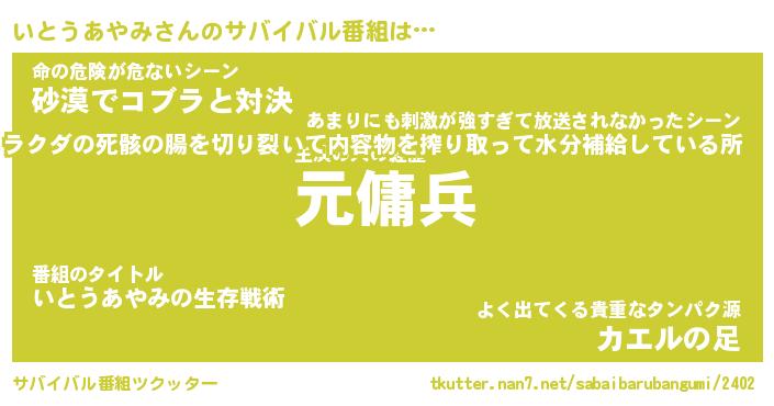 | 胡散臭い通販商品みたいなあだ名 | 『億万長者になれるブレスレット…その名も「いとうあやみ」』 |