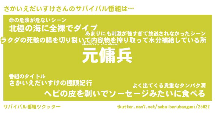 | 胡散臭い通販商品みたいなあだ名 | 『億万長者になれる水晶球…その名も「さかいえだいすけ」』 |
