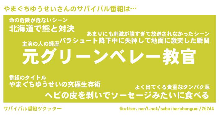 | 伝説のあだ名 | 『伝説のスナイパーやまぐちゆうせい』 |