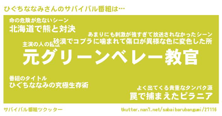 | ヒーロー風カッコイイあだ名 | 『スーパーヒグチナナミ』『天弓騎士ヒグ』 |