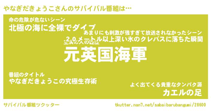 | 伝説のあだ名 | 『伝説のスナイパーやなぎだきょうこ』 |