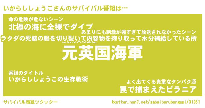 | 伝説のあだ名 | 『伝説の傭兵いからししょうこ』 |
