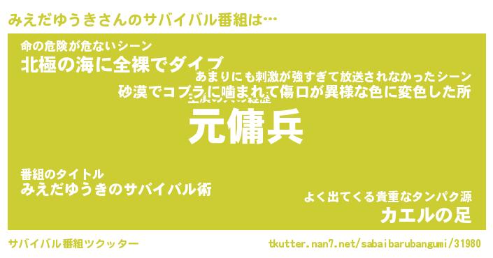 | 胡散臭い通販商品みたいなあだ名 | 『億万長者になれるブレスレット…その名も「みえだゆうき」』 |