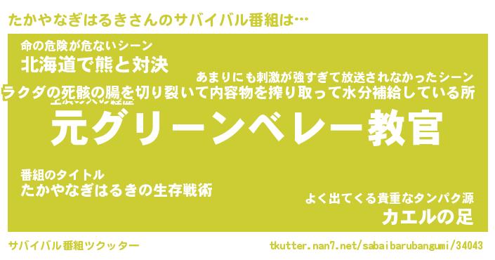 | 伝説のあだ名 | 『伝説のスナイパーたかやなぎはるき』 |
