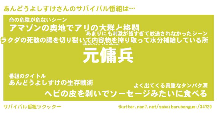 | 伝説のあだ名 | 『封印されし傭兵あんどうよしすけ』 |