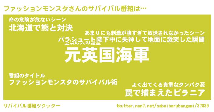 | 伝説のあだ名 | 『伝説のスナイパーファッションモンスタ』 |