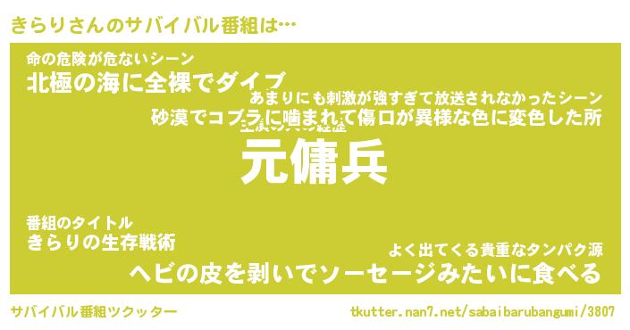 | ヘコむあだ名 | 『きらにー』『牛乳』『きら太郎』 |