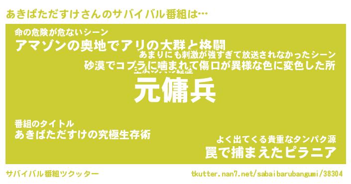 | 伝説のあだ名 | 『封印されし傭兵あきばただすけ』 |