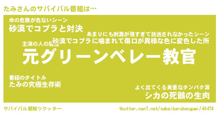 | ヒーロー風カッコイイあだ名 | 『スーパータミ』『ウルトラたみマン』 |