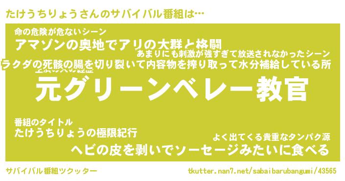 | ヘコむあだ名 | 『たけもー』『レバニラ』『たけを』 |