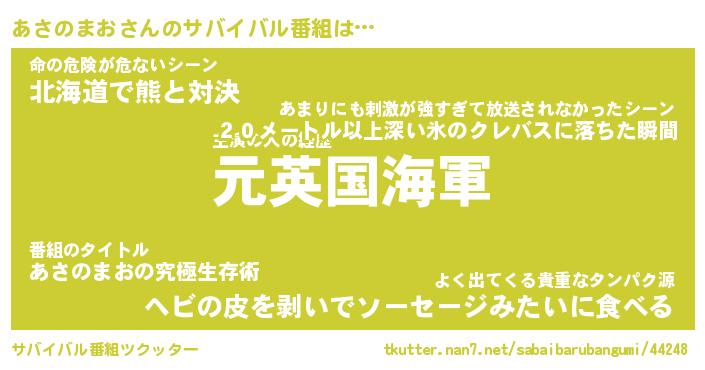 | ヘコむあだ名 | 『あさふぇ~』『なまこ酢』 |