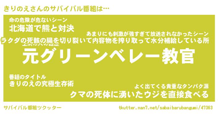 | 欧米人風あだ名 | 『マイケルきりのえ』『ウサインきりのえ』 |