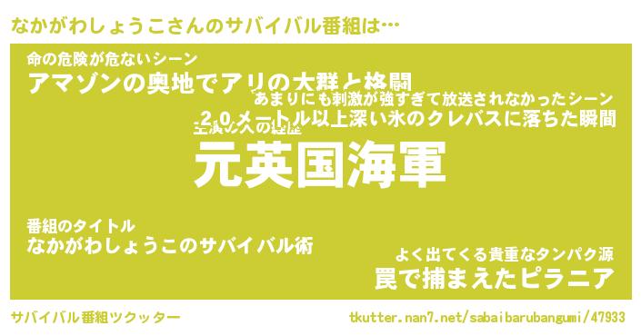 | 伝説のあだ名 | 『伝説のスナイパーなかがわしょうこ』 |