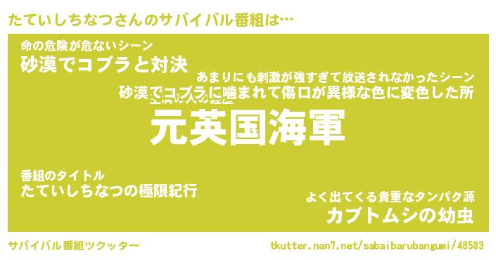 | 伝説のあだ名 | 『伝説の傭兵たていしちなつ』 |