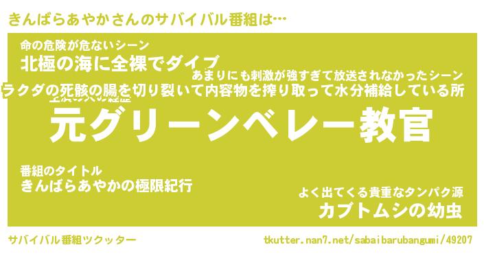 | 伝説のあだ名 | 『伝説のスナイパーきんばらあやか』 |
