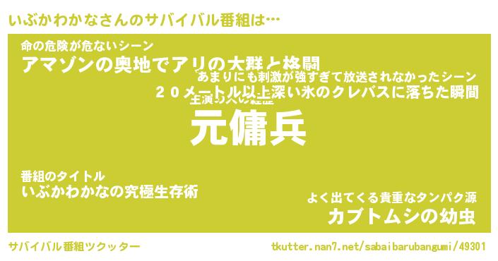 | 胡散臭い通販商品みたいなあだ名 | 『億万長者になれるブレスレット…その名も「いぶかわかな」』 |