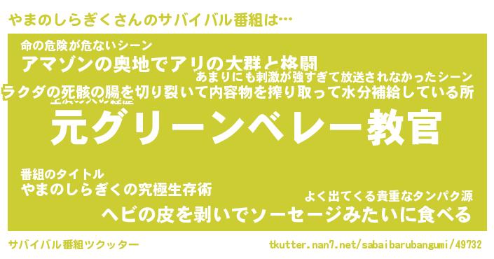 | 胡散臭い通販商品みたいなあだ名 | 『モテモテ間違いなしブレスレット…その名も「やまのしらぎく」』 |