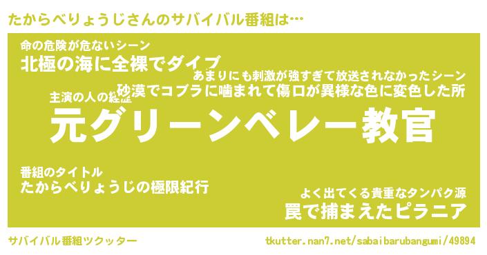 | 伝説のあだ名 | 『不死鳥のスナイパーたからべりょうじ』 |